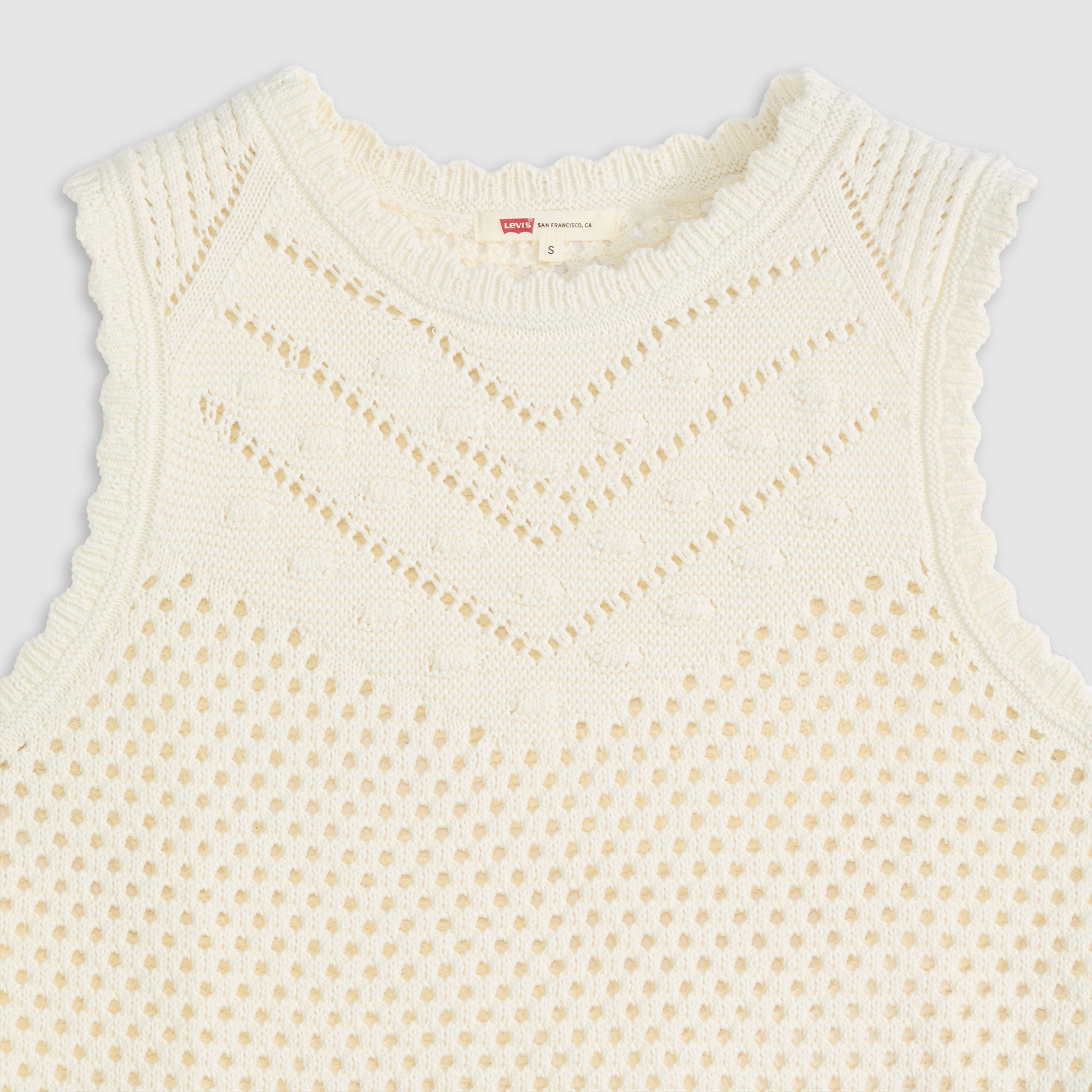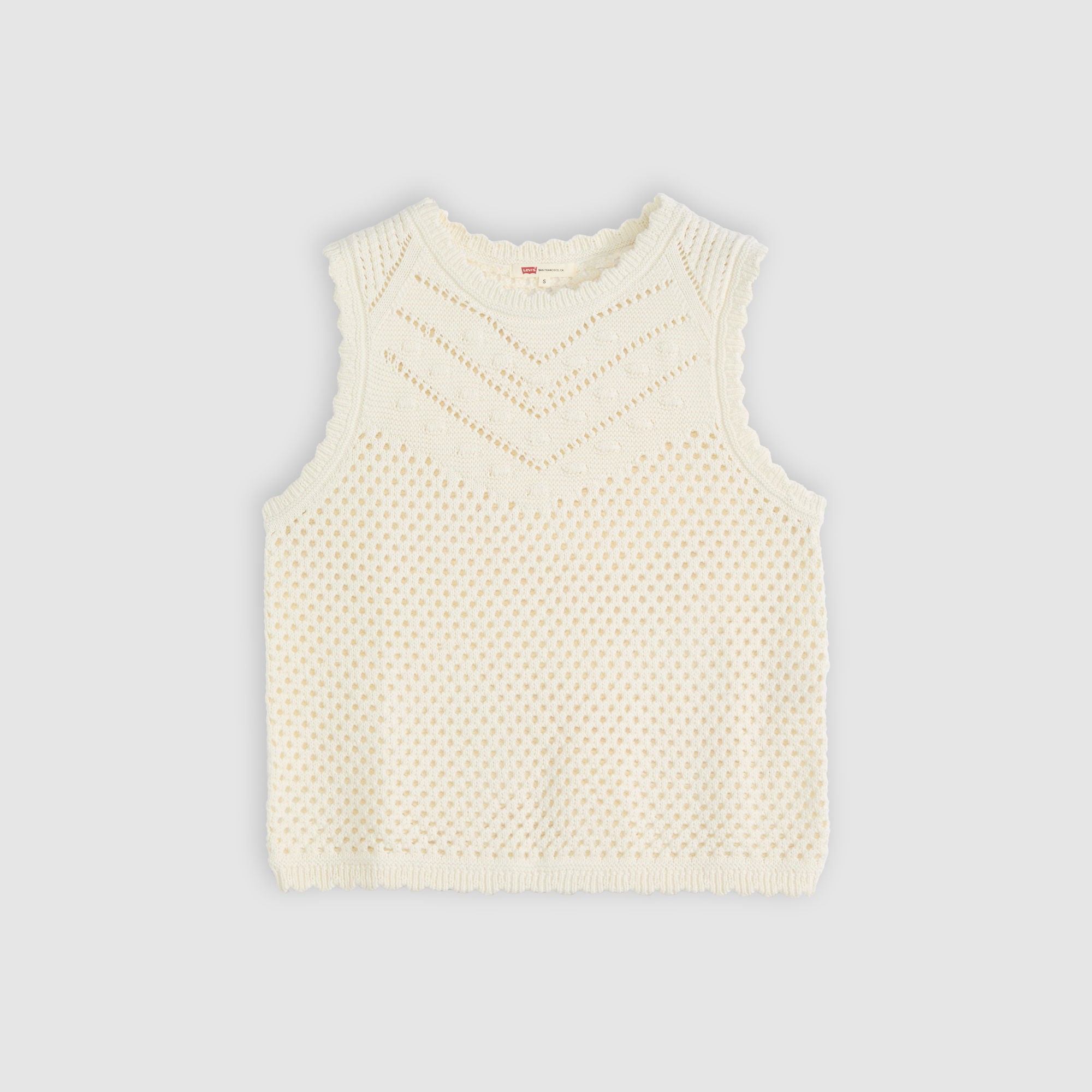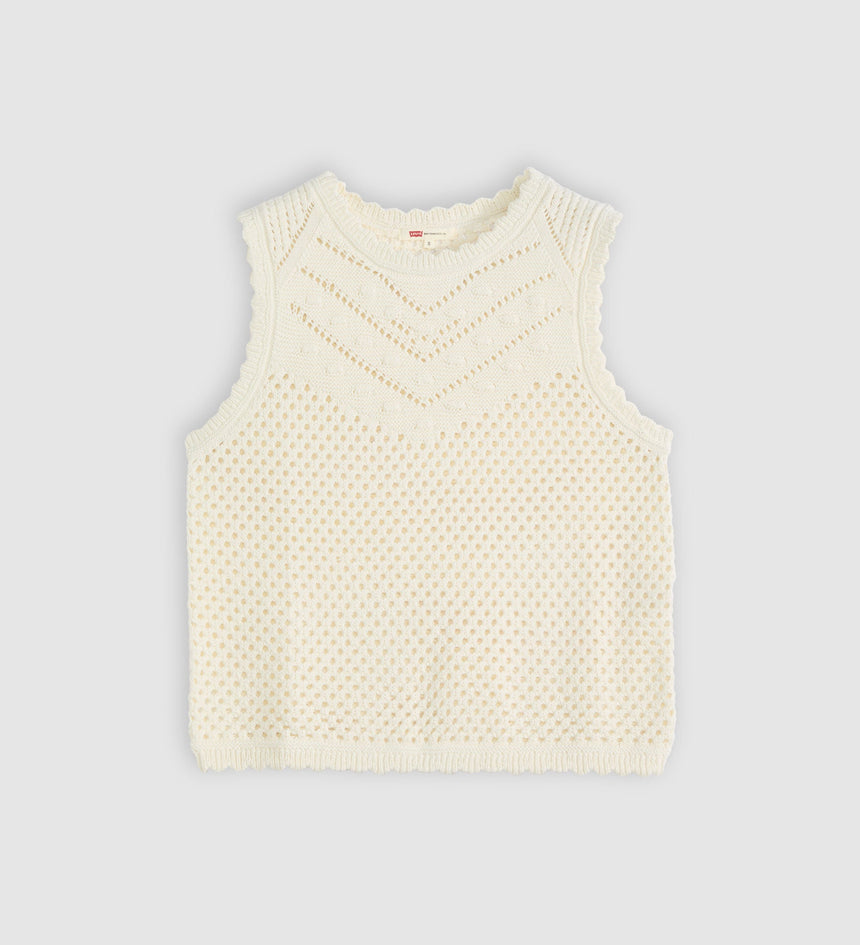 Our Adrienne Crochet Tank is both playful and easygoing thanks to its crochet-trimmed high neckline, knit design and sleeveless cut.