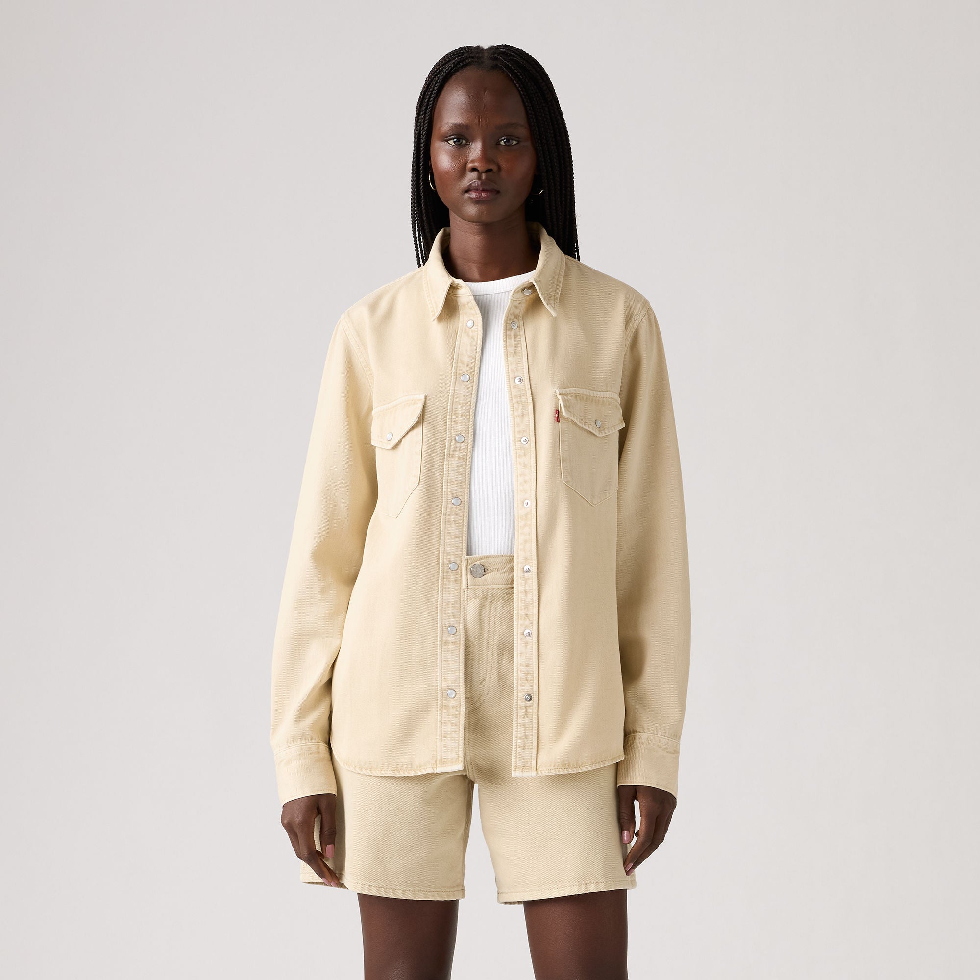 - A long-sleeve denim western shirt