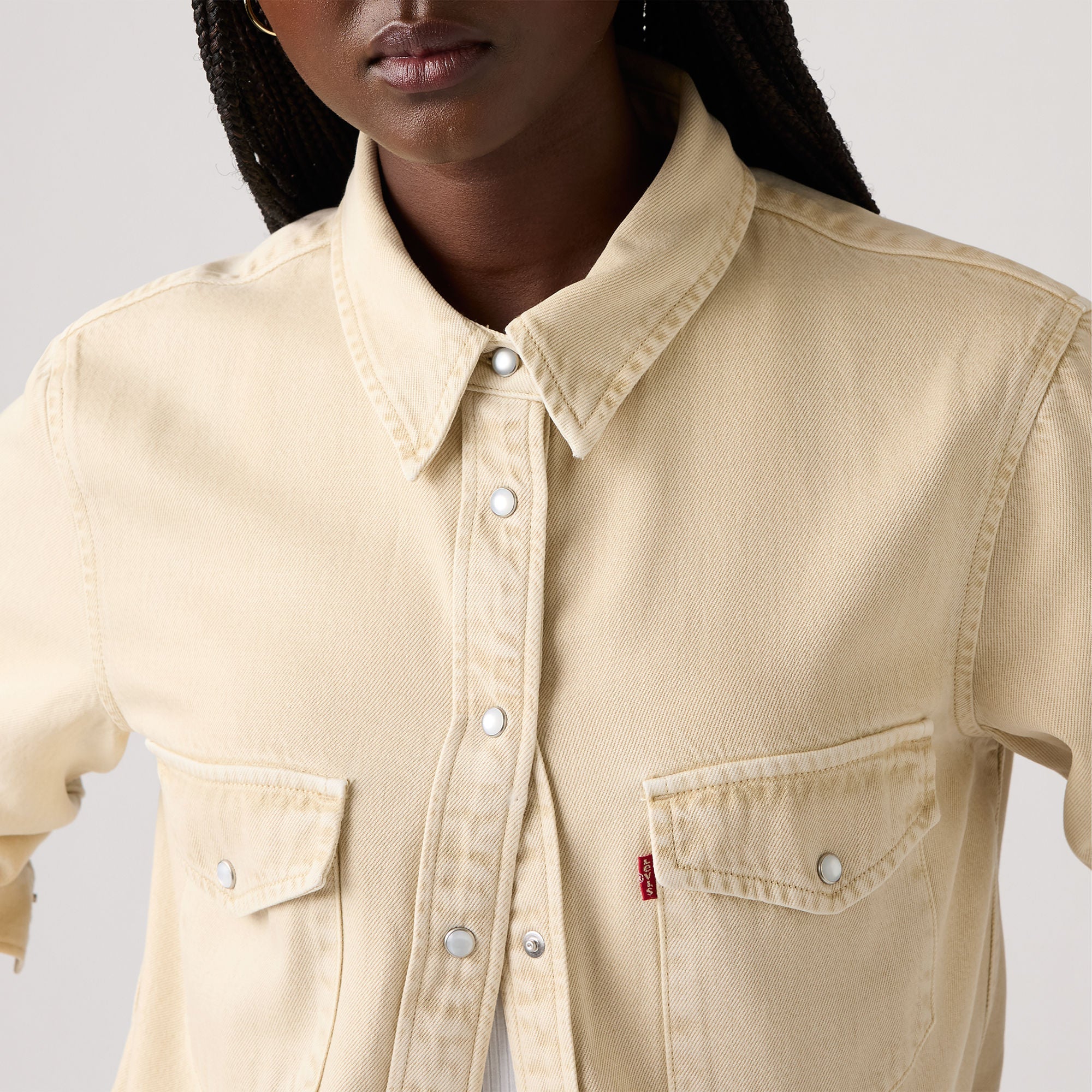 - Features original western yoke details, chest pockets and a snap-front closure—symbolic of rugged American culture