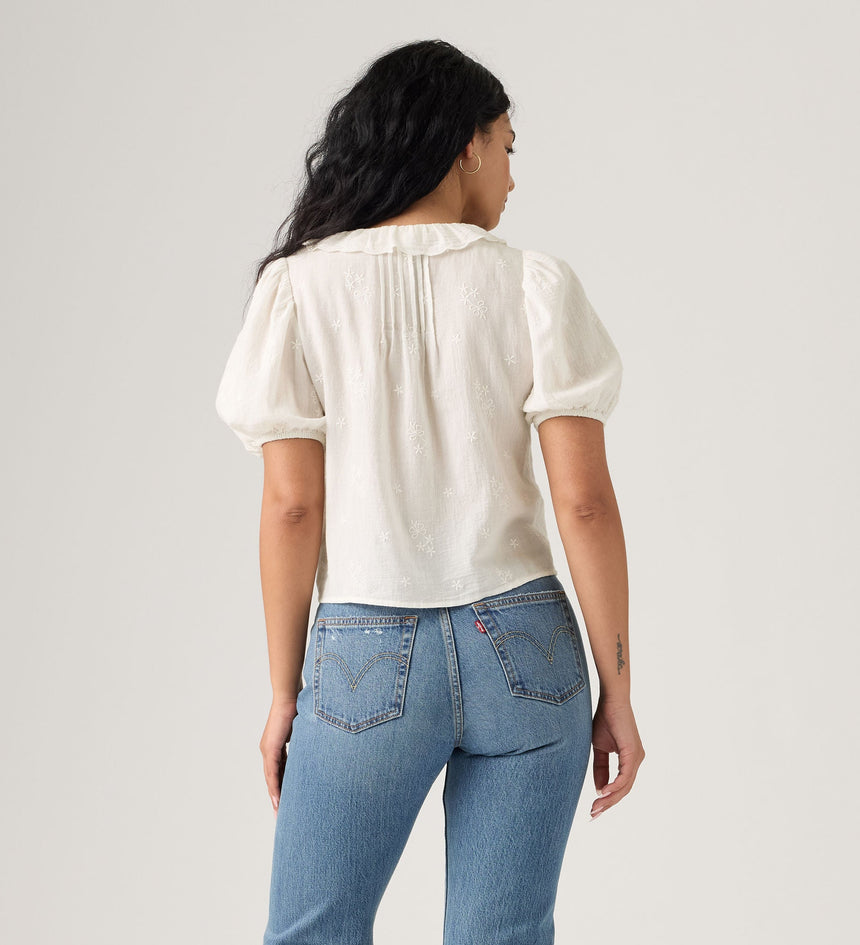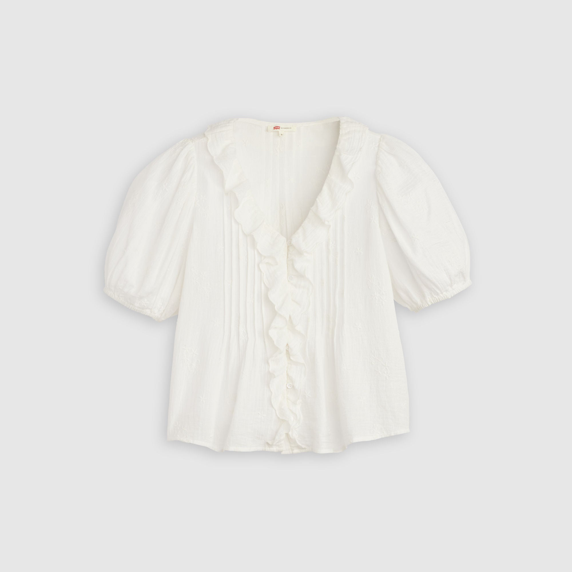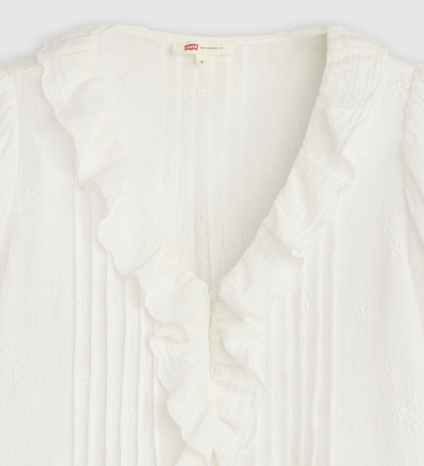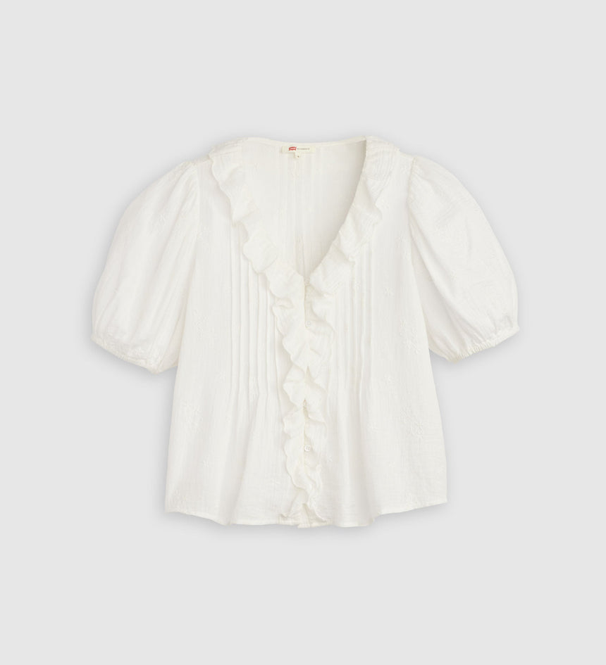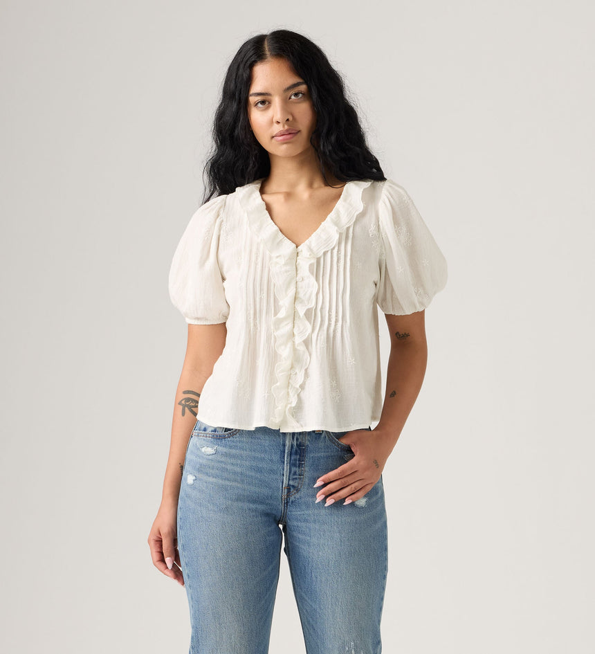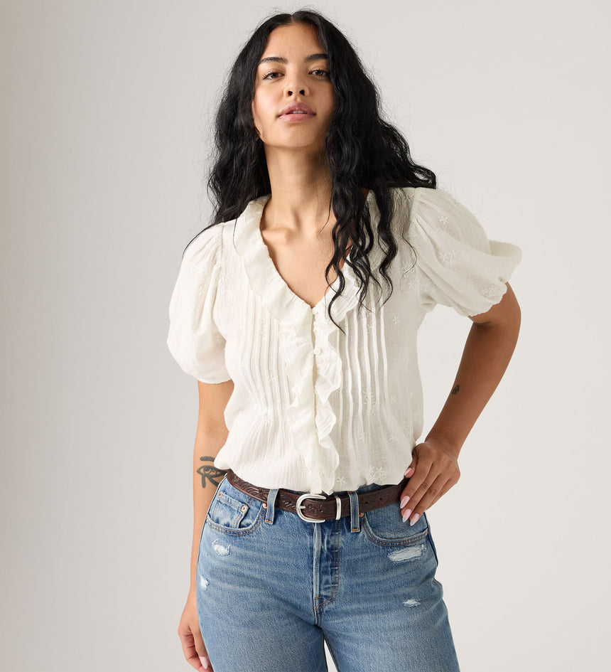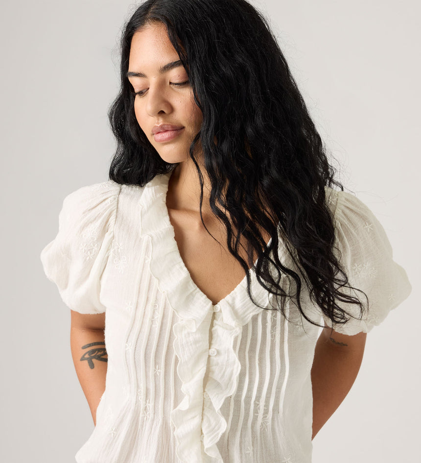 All flutter, no fuss. Our Giselle Ruffle Blouse features a soft scoop neckline with ruffle detailing, a button-up front and an easy standard fit.