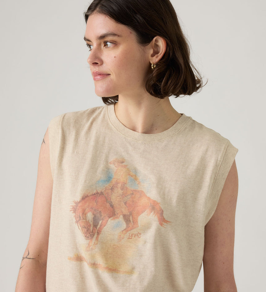 The definition of a warm-weather staple, our Graphic Boxy Tank features a crew neckline, a sleeveless design and a standard fit for extra movement.