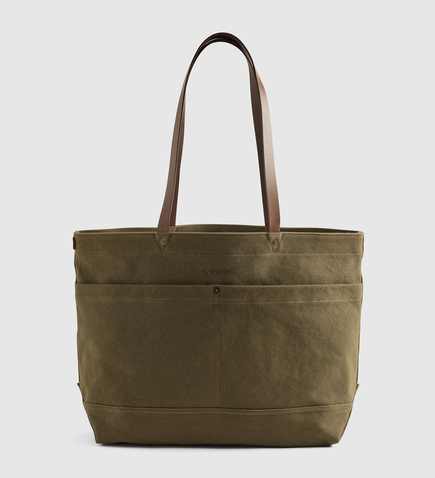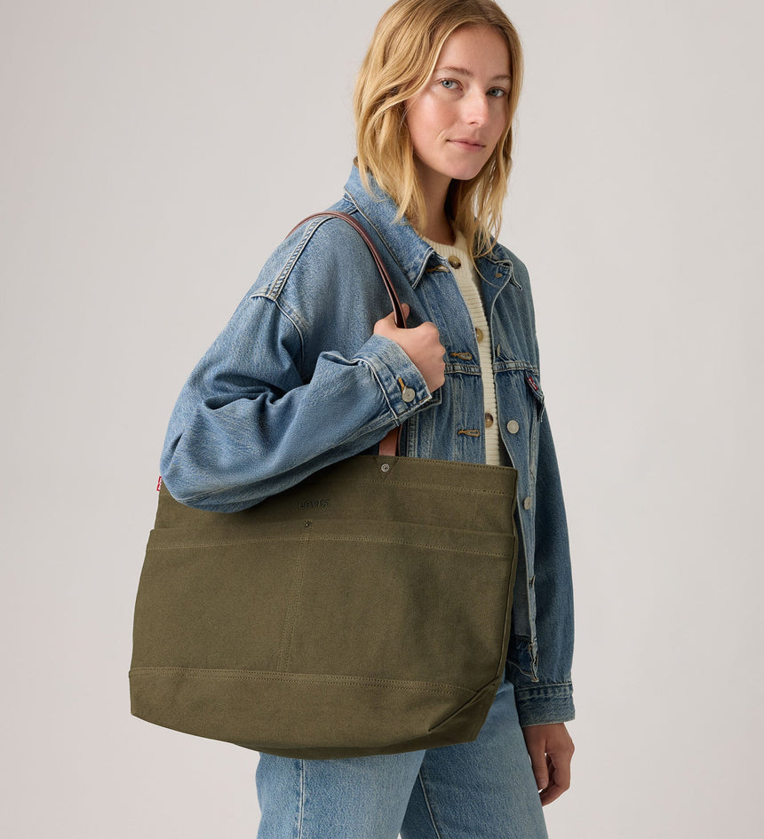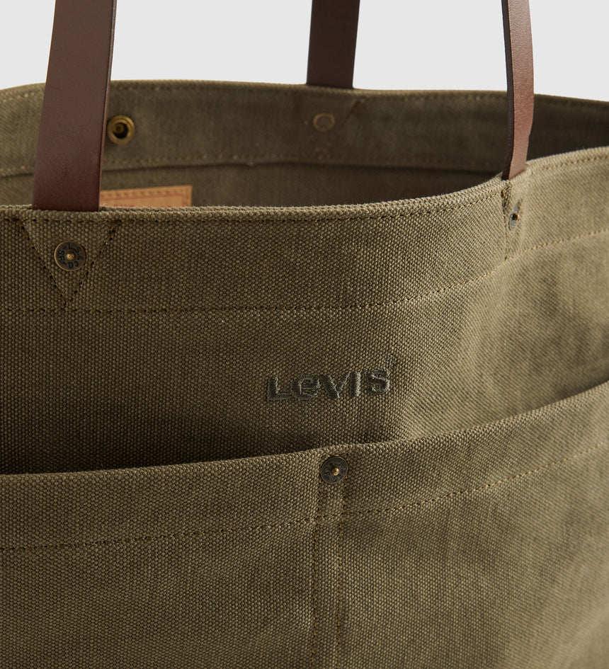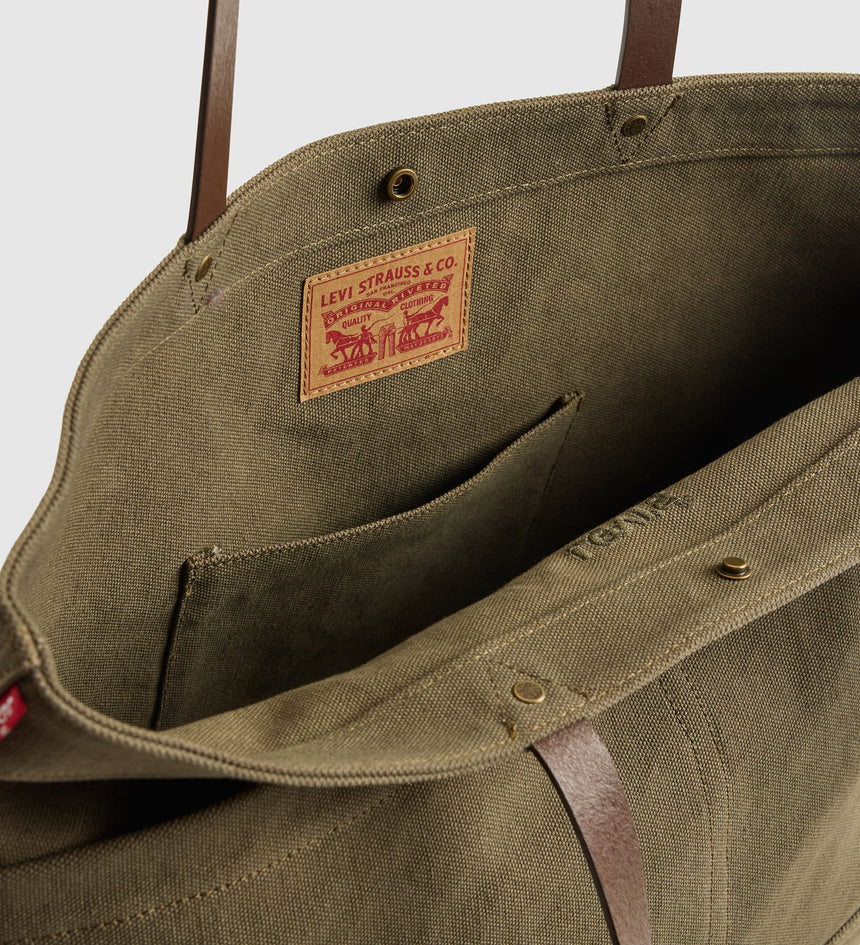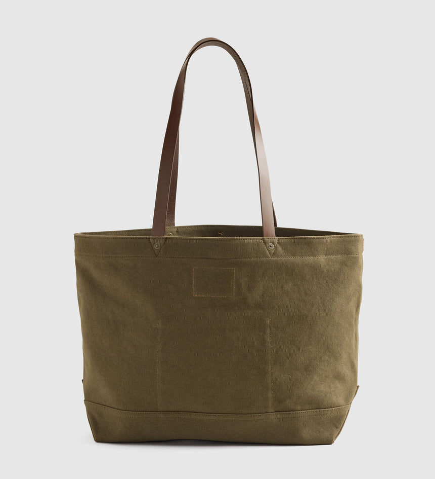 Inspired by our archive, this Tote-All Bag is the ideal throw-it-all-in-and-go bag. We designed it with durable cotton canvas, leather straps, a main compartment with a snap closure, an interior patch pocket and rivets for reinforcement.