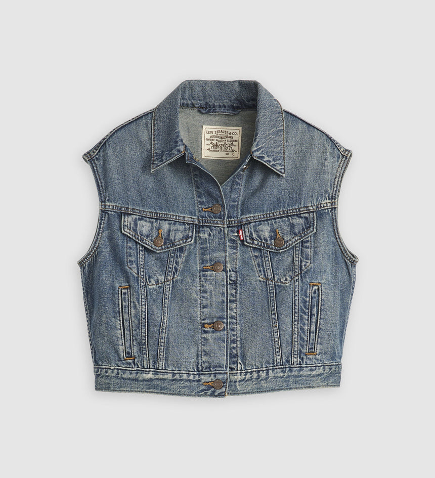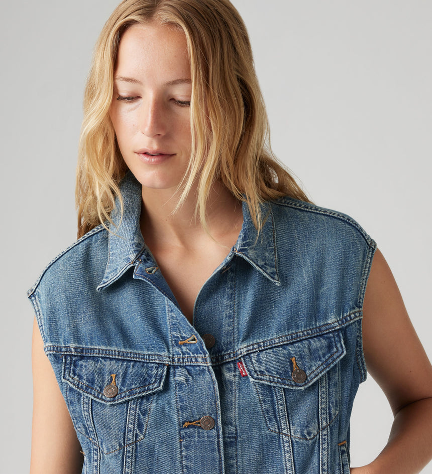 Our iconic Shrunken '90s Trucker Jacket gets a vest update. You'd be hard-pressed to find a vest with an easier shape, more versatile weight or inherent sense of cool. Bonus: This throwback cut features a pitched silhouette for a distinctly ‘90s feel.