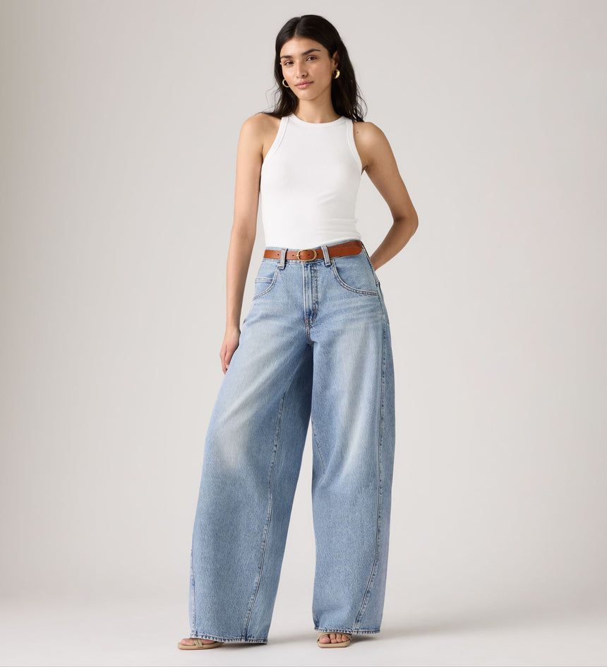Our Super Baggy Barrel jeans are as comfortable as they are effortless, thanks to their easy mid rise, curved leg cut and loose fit.