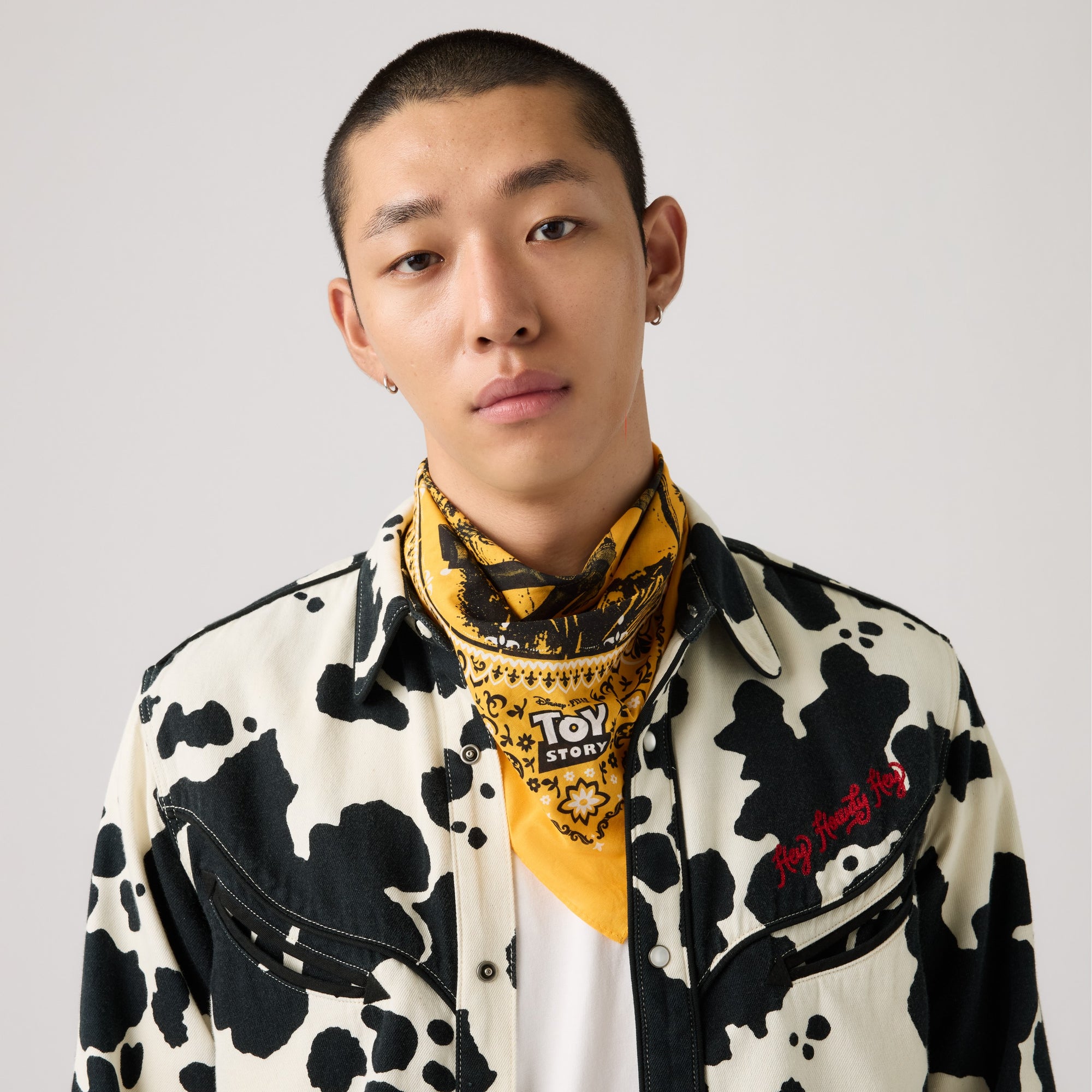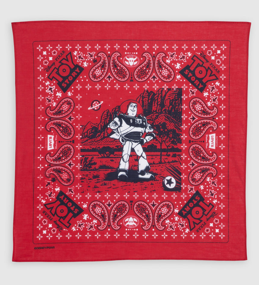 - Includes a yellow bandana with Woody Saddleman, a red bandana with Buzz Lightyear and a white bandana with Jessie.