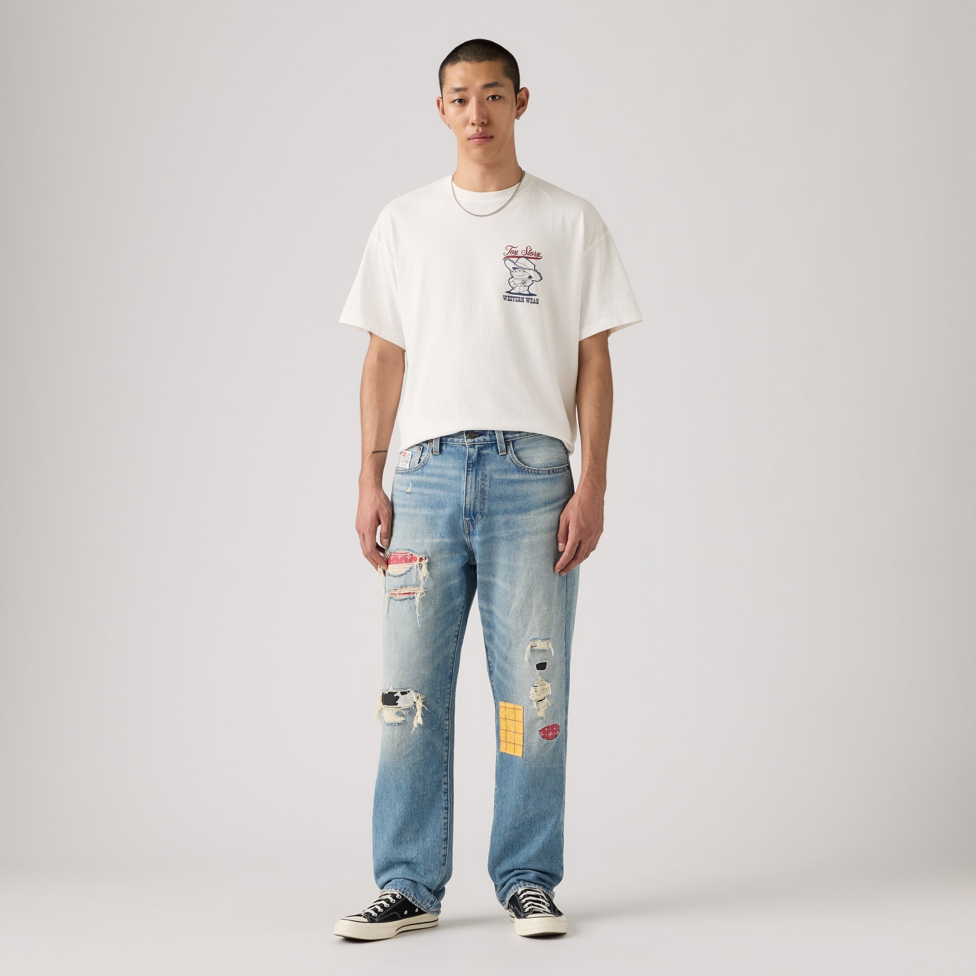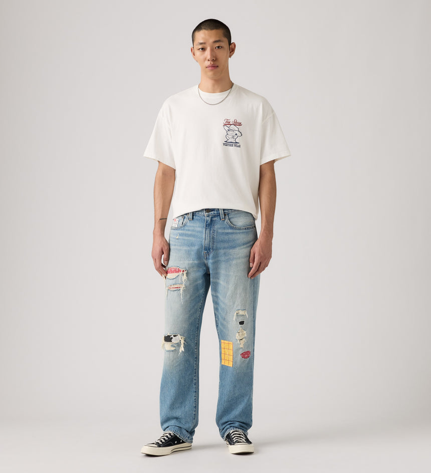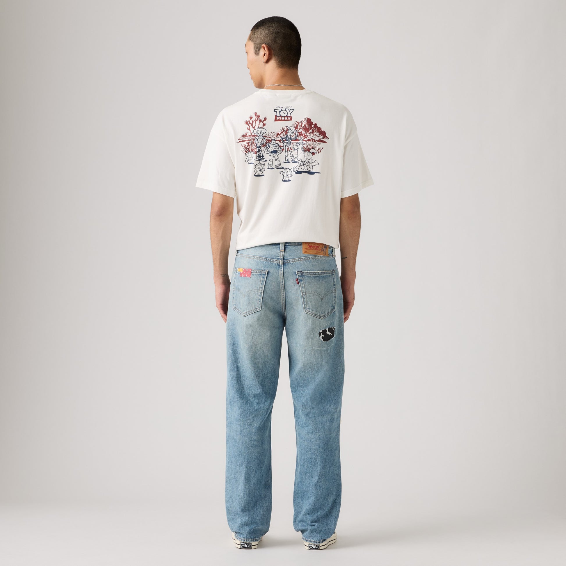 These limited-edition 568 Loose Jeans feature patch and repair detailing that use Woody's iconic fabric patterns, custom pocket bags with Andy’s handwriting and Saddleman graphics, a randomly selected patch featuring your favorite characters and a co-branded jacron patch at the waistband.