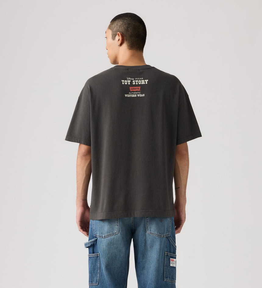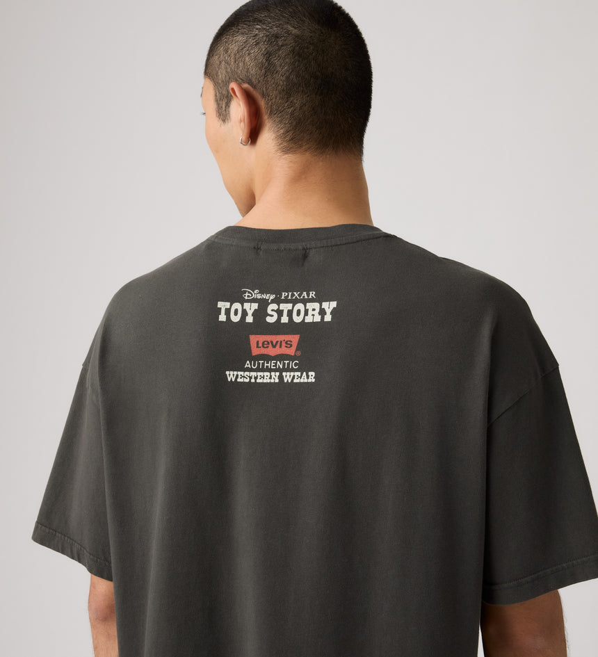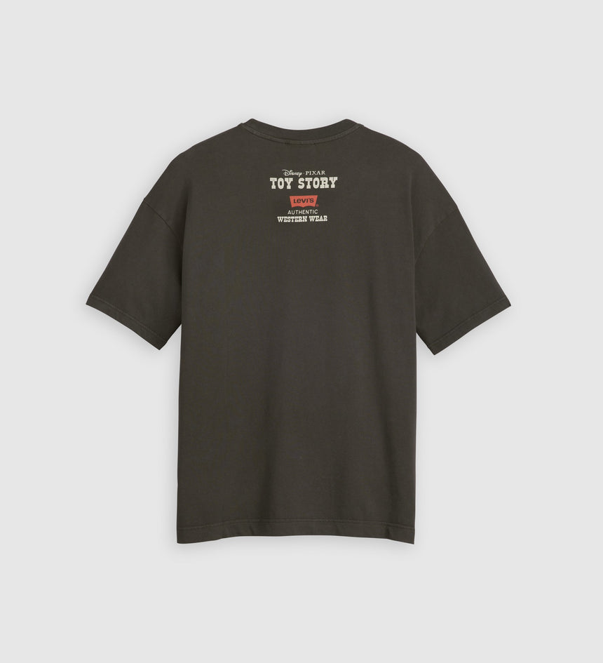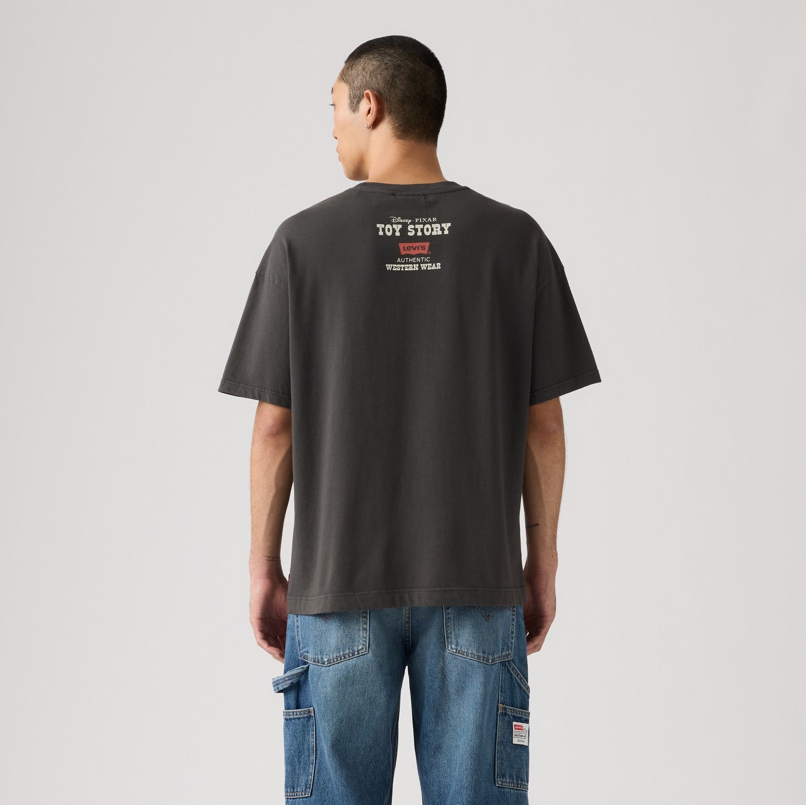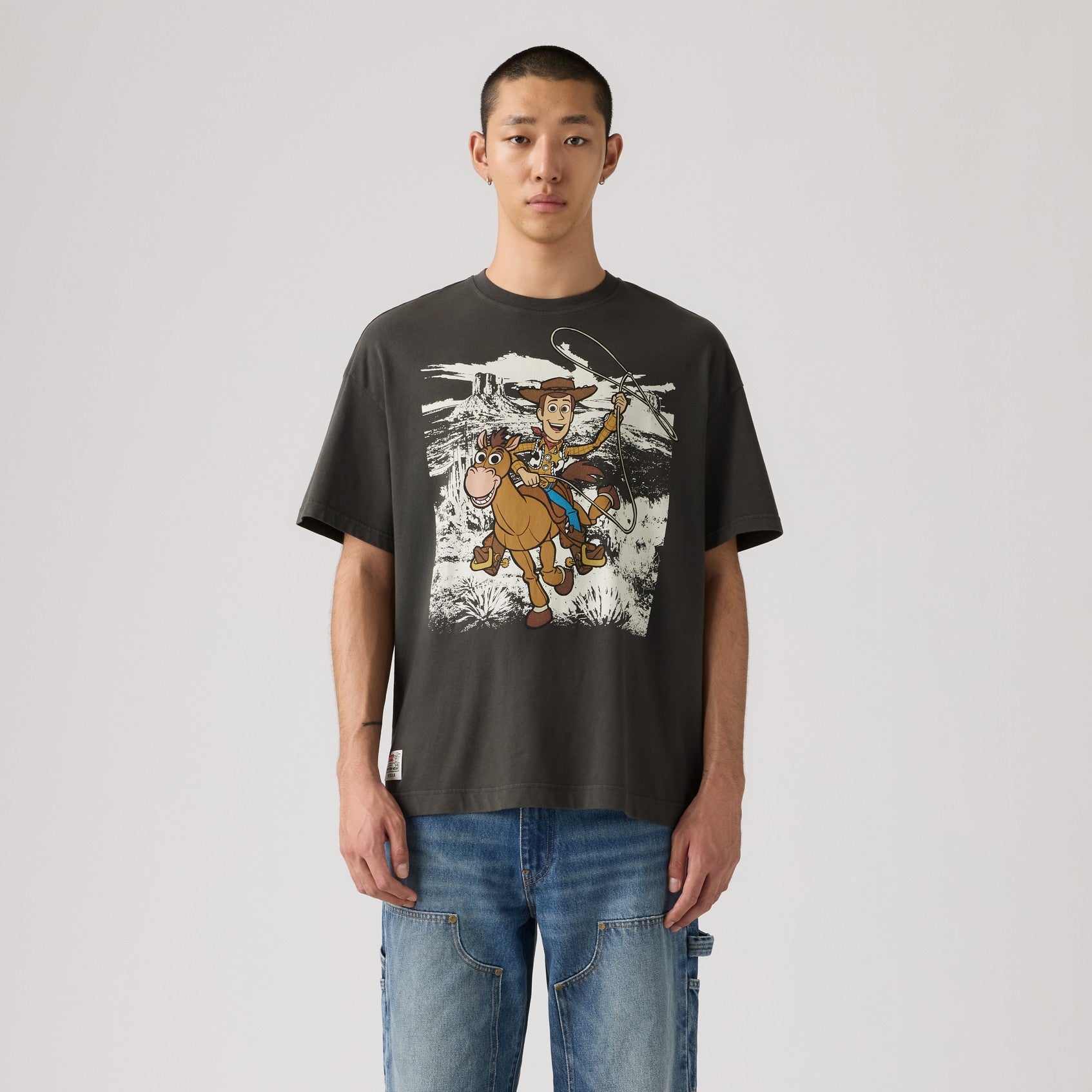 This limited-edition Boxy Tee features a vintage wash with a one-of-a-kind Woody graphic riding Bullseye through a western landscape.