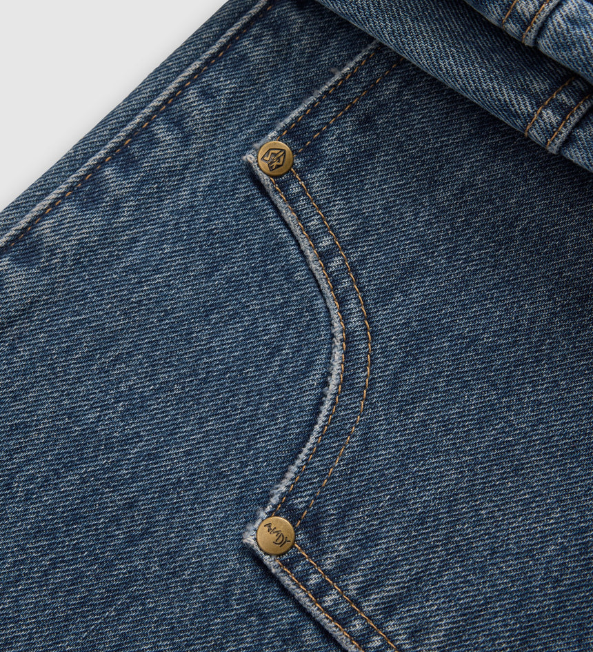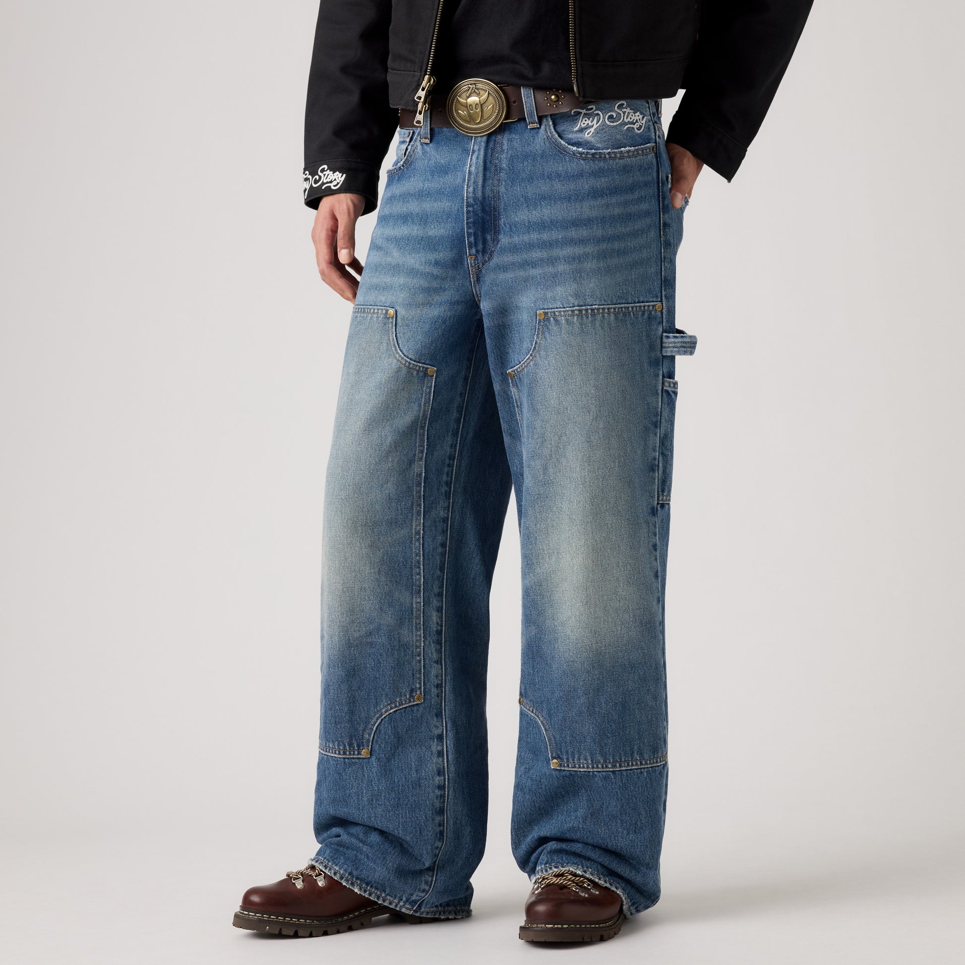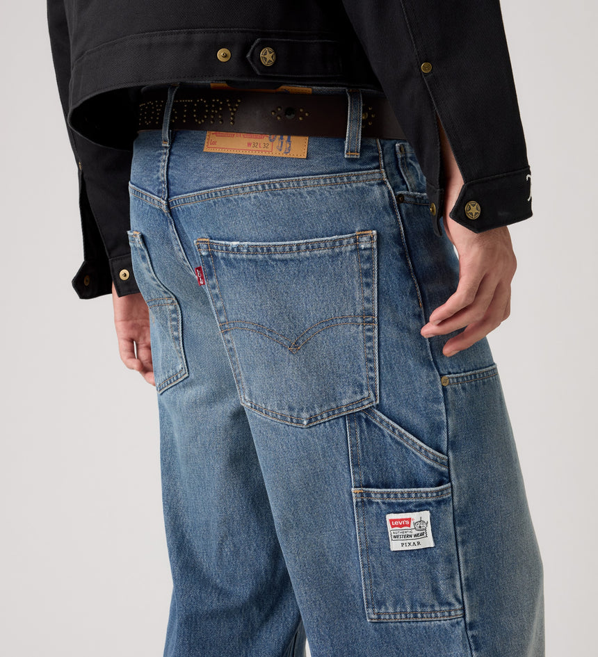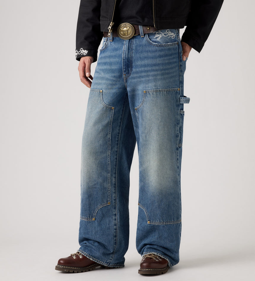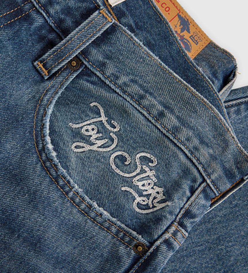 These limited-edition Western Flare jeans feature double-kneed carpenter details and custom pocket bags with Andy’s handwriting and Saddleman graphics. Plus, it's designed with a randomly selected patch featuring your favorite characters on the utility pocket as well as a "Toy Story" chainstitch embroidery on the pocket.