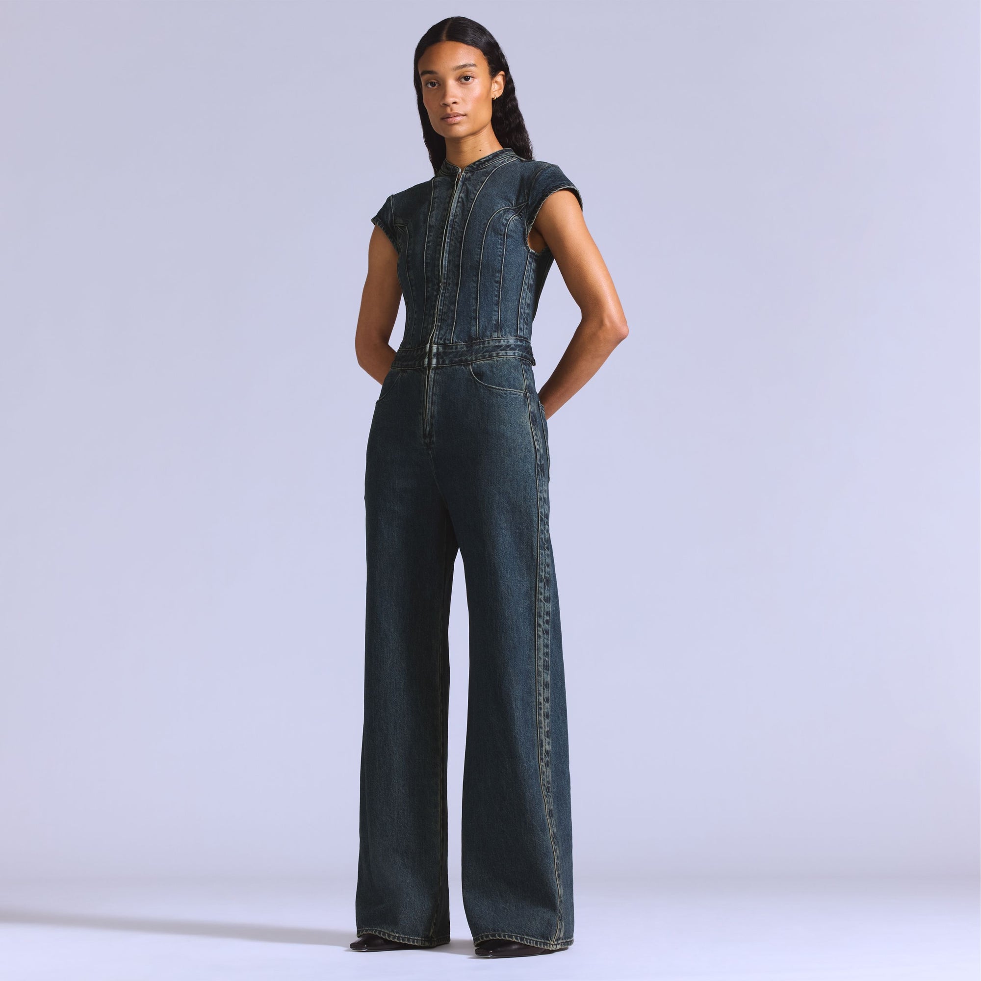 Our Moto Jumpsuit is made with a flattering slim fit, a half zip design and premium Japanese denim.