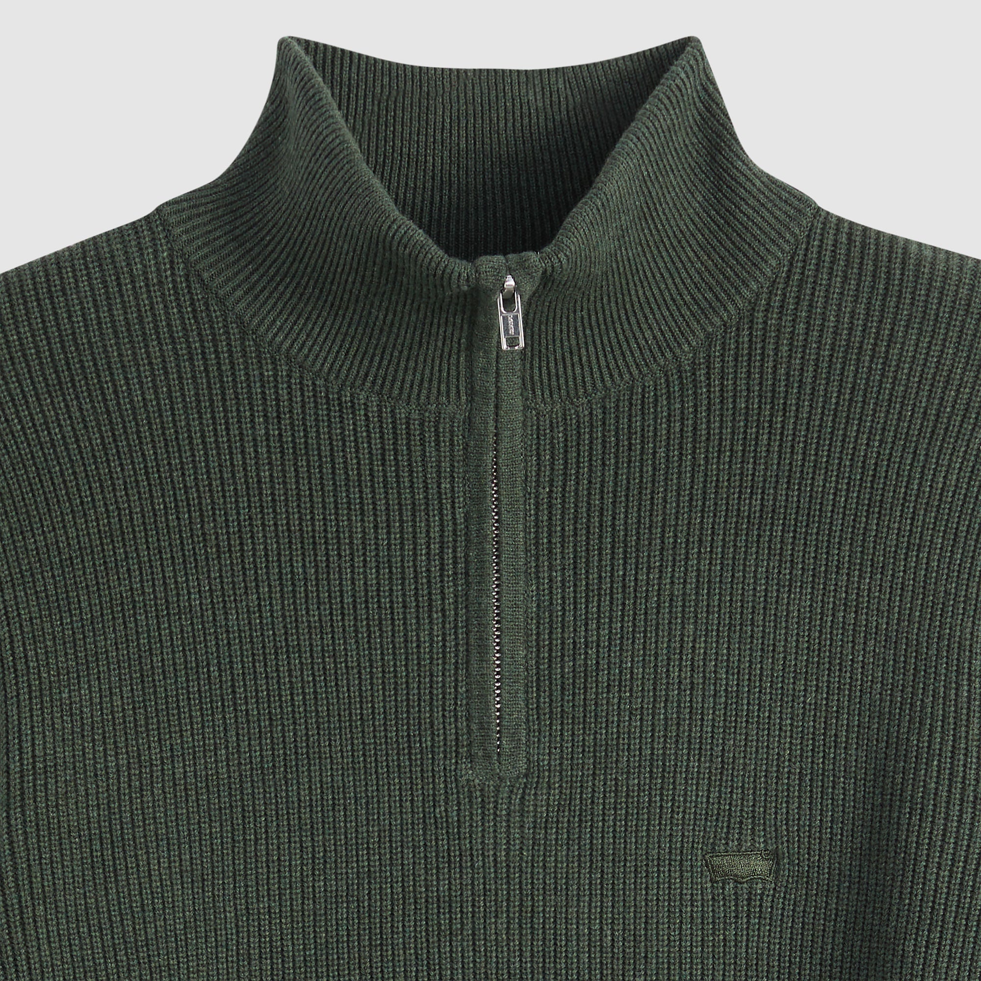 The modern essential: our Housemark Quarter Zip Sweater. We designed it with an easy, standard fit and soft, ribbed knit for comfort.