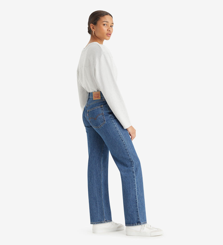 - A vintage-inspired fit updated with a mid rise