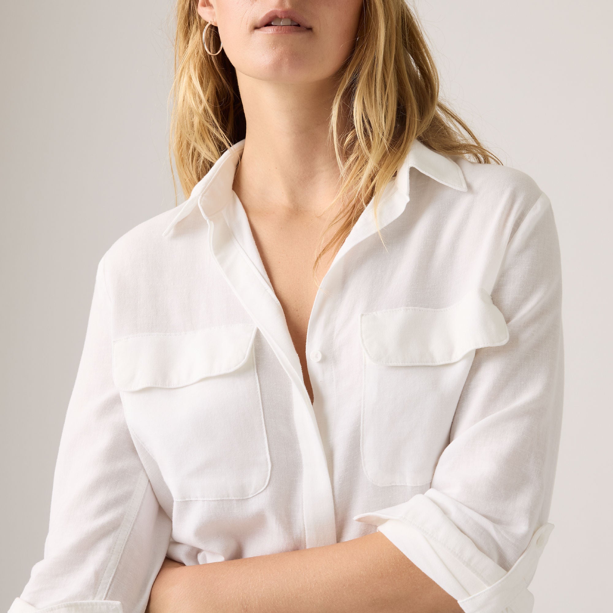 The timeless utility shirt gets a laidback upgrade. We designed our Elaine Utility Shirt with a classic button-up front, patch pockets and a relaxed fit for all-day ease.