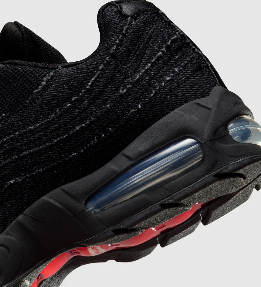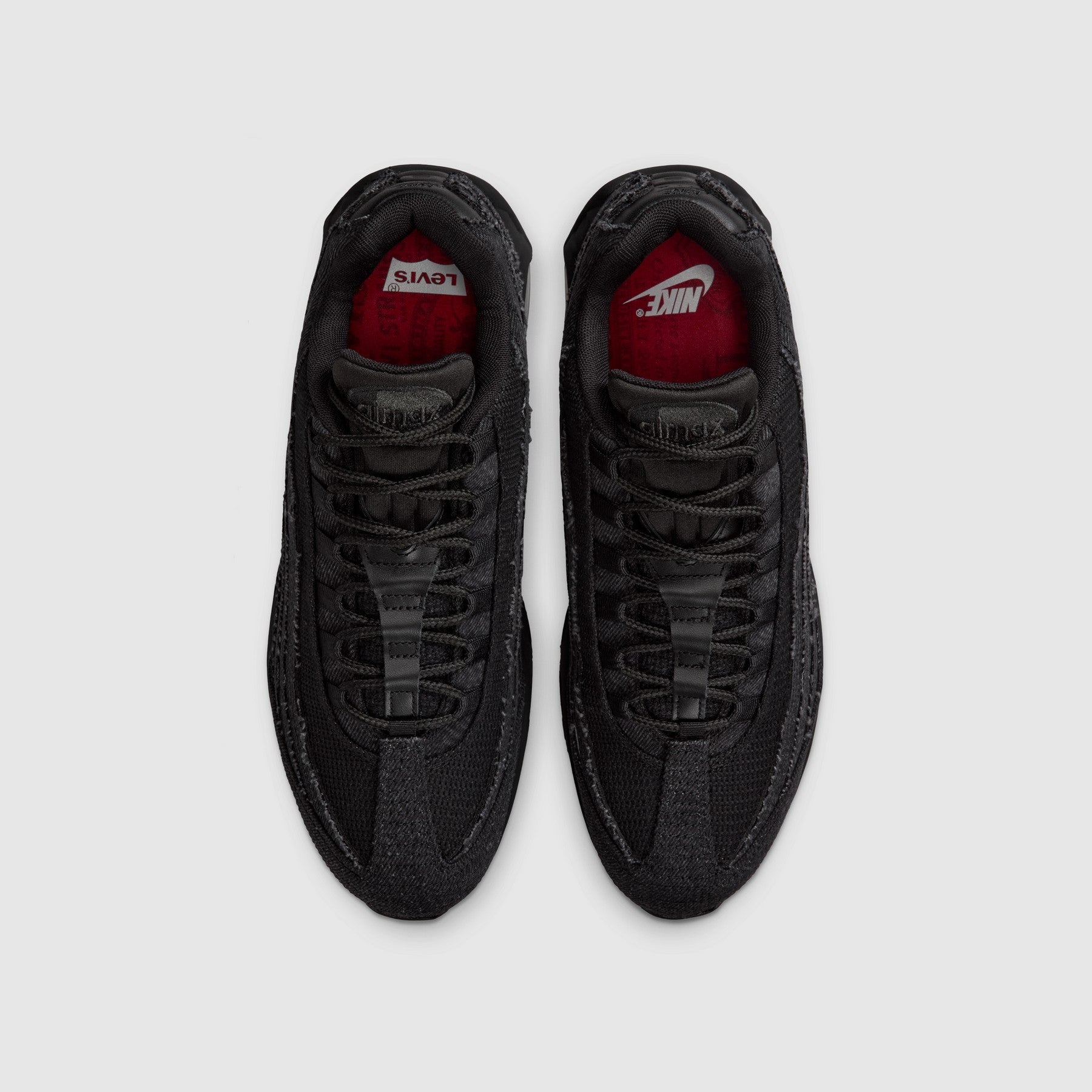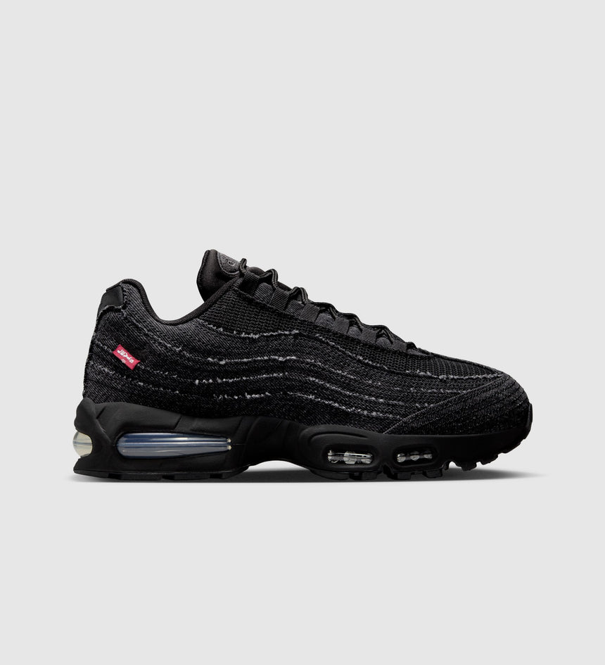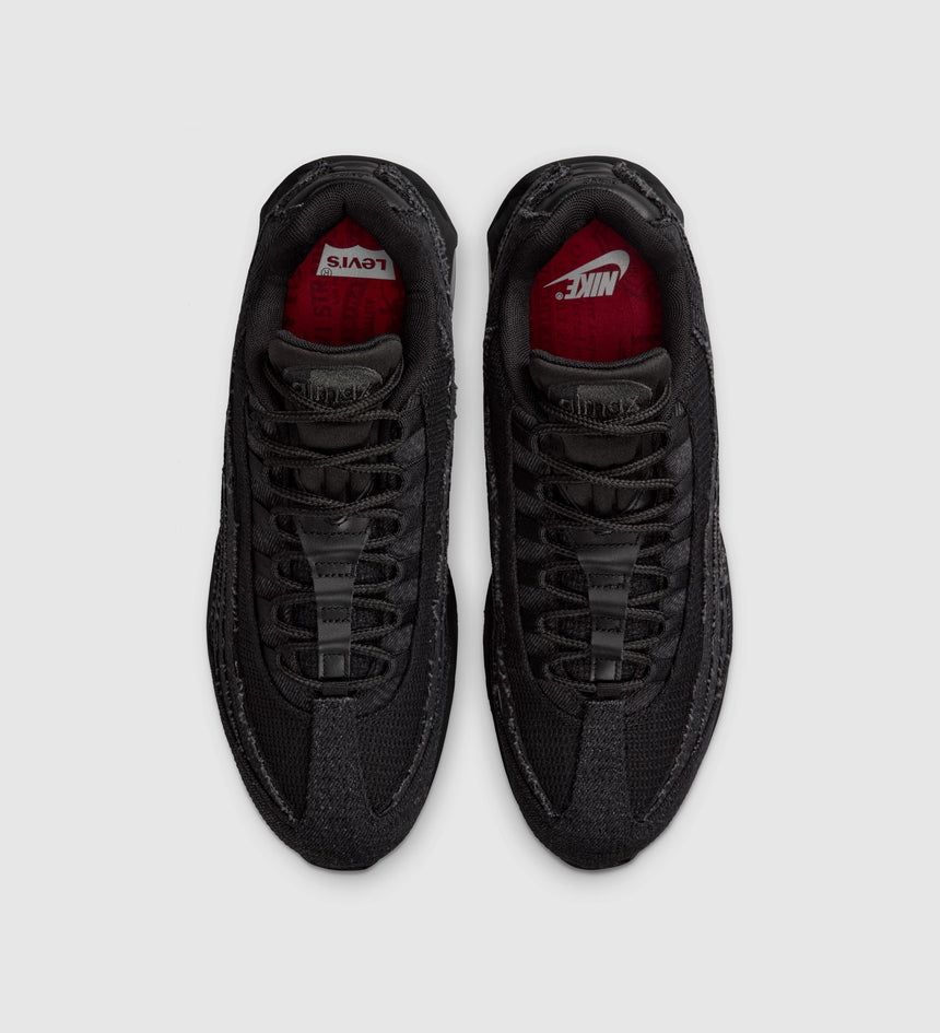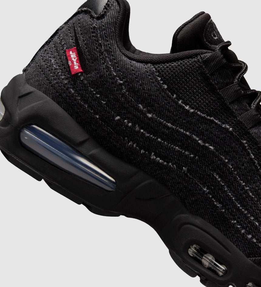 These smooth, limited-edition Nike Air Max 95 Sneakers feature 14-ounce black denim construction for a bold, monochromatic look. We also added exclusive details like our iconic red tab under the Nike swoosh and red Levi's® branding on the shank.